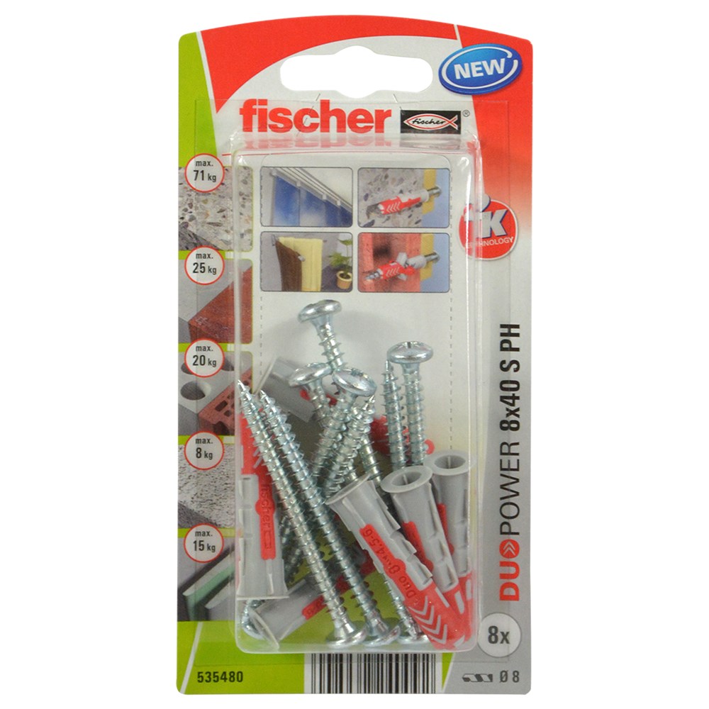 Fischer Universal plug 8 x DUOPOWER 8 x 40, 8 x pan head screw 5.0 x 60