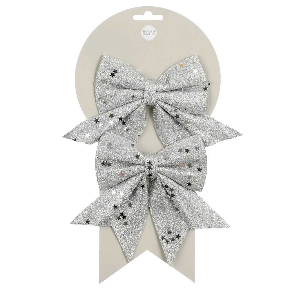 Po vlerësoni:Fjongo dekoruese (PK 2), poliestër, argjendi, 13 cm