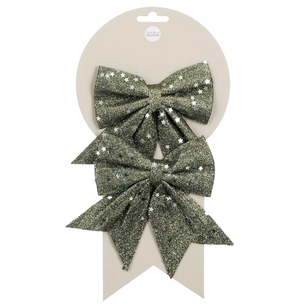 Po vlerësoni:Fjongo dekoruese (PK 2), poliestër, jeshile, 13 cm