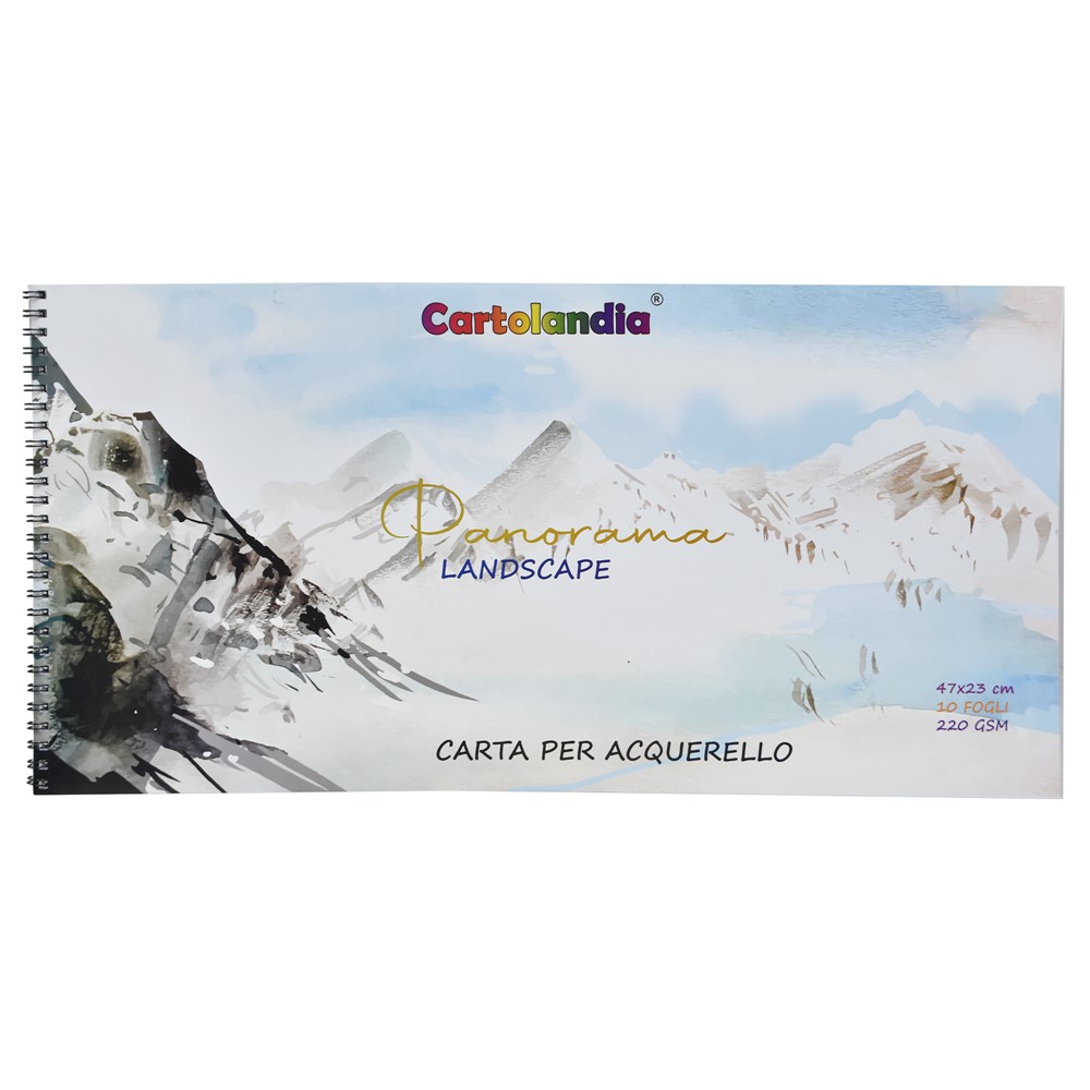 Fletore vizatimi panorama me spirale, për akuarel, Cartolandia, letër, 47x23 cm, e bardhë, 10 fletë