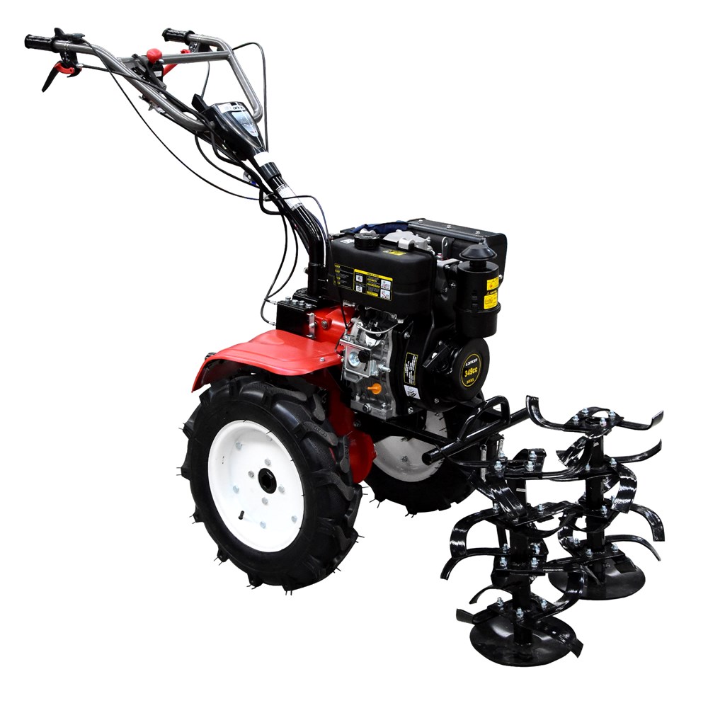 Freze toke 349CC (motor 4-kohesh nafte) 3600 RPM me thika përpara. Freza eshte e pajisur me 2 marshe para dhe 1 marsh mbrapa për përdorim më të lehtë dhe mekanizëm ndezës me litar dhe motorrino. Thikat e frezës janë të përbëra nga celik i përforcuar për të kryer kultivim dhe punim më efikasitet. E pajisur me goma të cmontueshme për transport të lehtë . freza perpara se te ndizet I behet mbushja me lenden djegese + lubrifikantin vaj motori SAE 15W40 / vaj kamijo SAE 140W ne baze te nivelit freza ka perdorim te gjere ne vreshtari /toka te lehta buqesore/ ferma etj. Frezes mund ti montohen edhe agregate te tjera : plug per punim toke /rimorkio tregtare deri 500kg / plug per hapjen e kanaleve / kultivator / dhe pompe uji .
