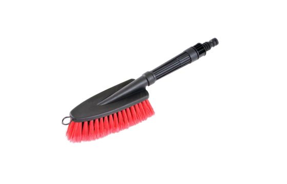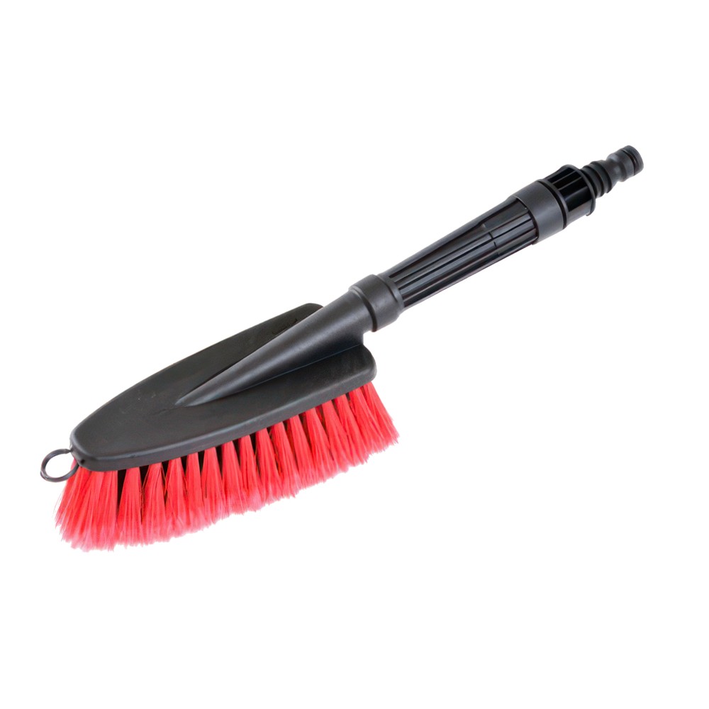 Furçë me fije artificiale për larjen e automjeteve e pajisur me rekorderi për të lidhur tubin e ujit.