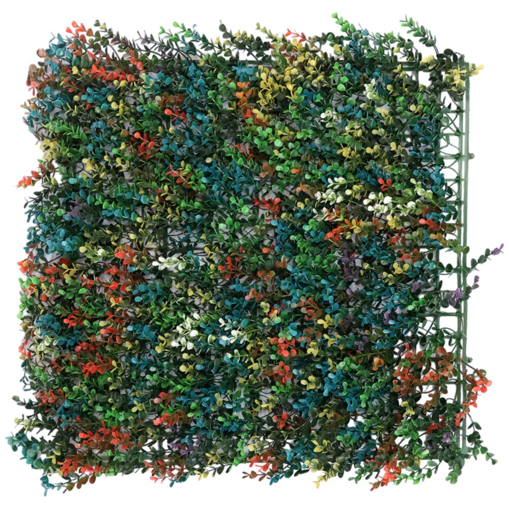 Artificial leaf fence, Giardino Verde, Buxus, 50x50 cm, 550 gr/m², 324 leaves/m², green, purple, orange colors