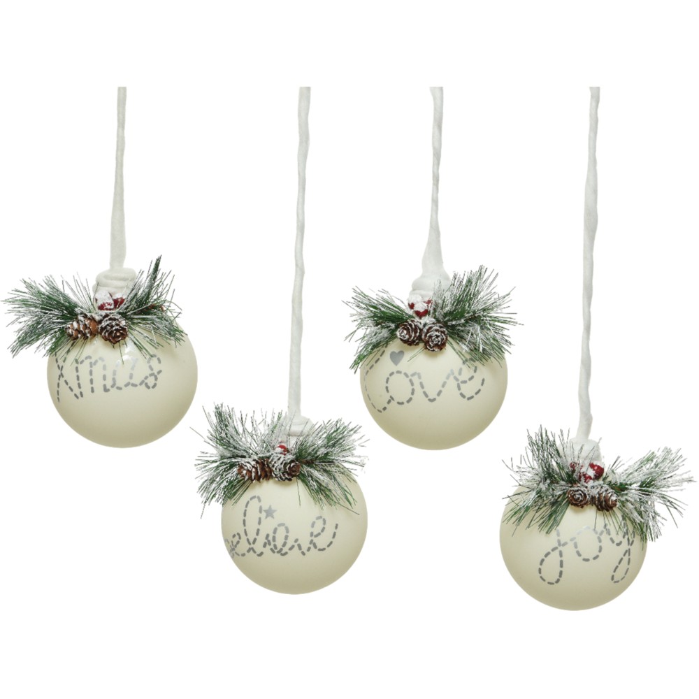 Po vlerësoni:Glob dekorues me varje, ngjyre mat, me dega pishe, 10 cm