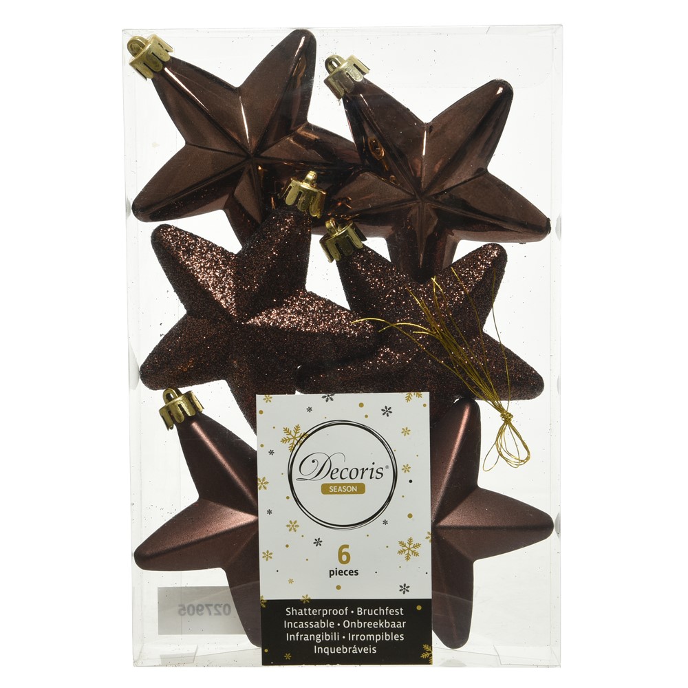 Po vlerësoni:Grumbull yjesh dekoruese me varje (Pk 6), plastike, kafe, 7.5 cm