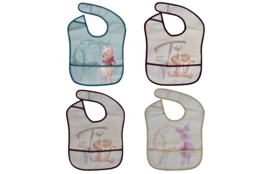 Gushore për beba prej materiali plastik me figura të ndryshme. Ana plastike e gushores mbron rrobat e fëmijës gjatë ushqyerjes.