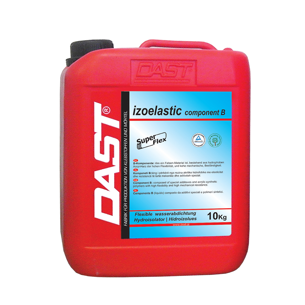 Material dy komponentësh elastik me bazë çimentoje, shumë rezistent ndaj ujit me presion. Shërben për të kryer hidroizolimin e sipërfaqeve në kontakt të shpeshtë me ujin dhe lagështirën. I përshtatshëm për themele ndërtesash, pishina, taraca etj. Shtrimin e membranave hidroizoluese përpara vendosjes së pllakave për brenda dhe jashtë. ● Mbrojtje fleksibile dhe rezistente ndaj ujit e lagështirës për sipërfaqet e betonit dhe suvatë. ● Veshje hidroizoluese dhe mbrojtëse e sipërfaqeve të betonit, subjekt i agresionit kimik, si kripërat anti-ngricë, sulfatet, etj. ● Nivelim hidroizolues dhe fleksibël i suvave të plasaritura. ● Sa më i madh është presioni i ujit aq më i trashë duhet aplikuar produkti. ● Veshje hidroizoluese dhe mbrojtëse e mureve në themele. ● Nivelim fleksibël i strukturave të betonit me seksione të holla, subjekt i dëmtimeve nga peshat (p.sh. strukturat e parafabrikuara). ● Hidroizolim i pishinave me beton të maturuar (mbi 6 muaj