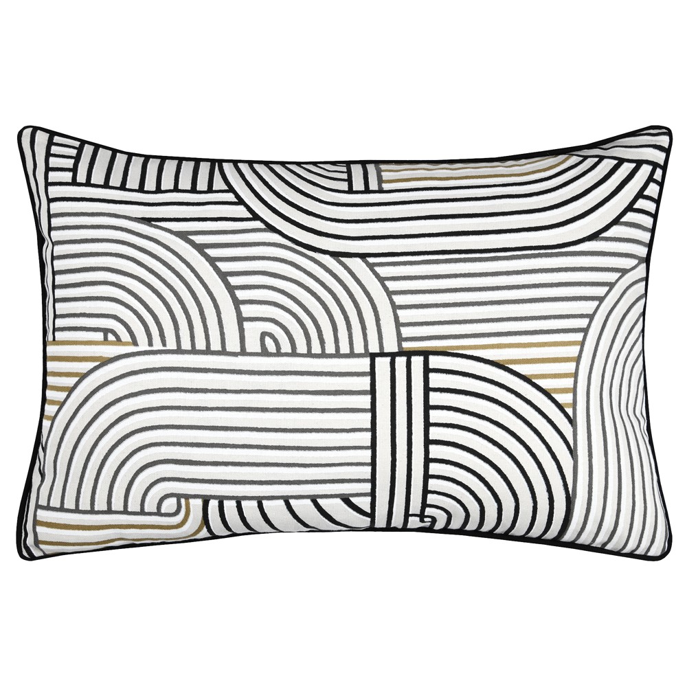 Jastëku dekori "Courbes" është një pjesë e dizajnit të brendshëm që mund të përdoret për të shtuar një prekje të veçantë estetike në ambiente të ndryshme. Ky jastëk është bërë nga një kombinim materiali prej 94% pambuku dhe 6% poliestri, duke përfshirë ngjyrën e bardhë dhe të zezë.