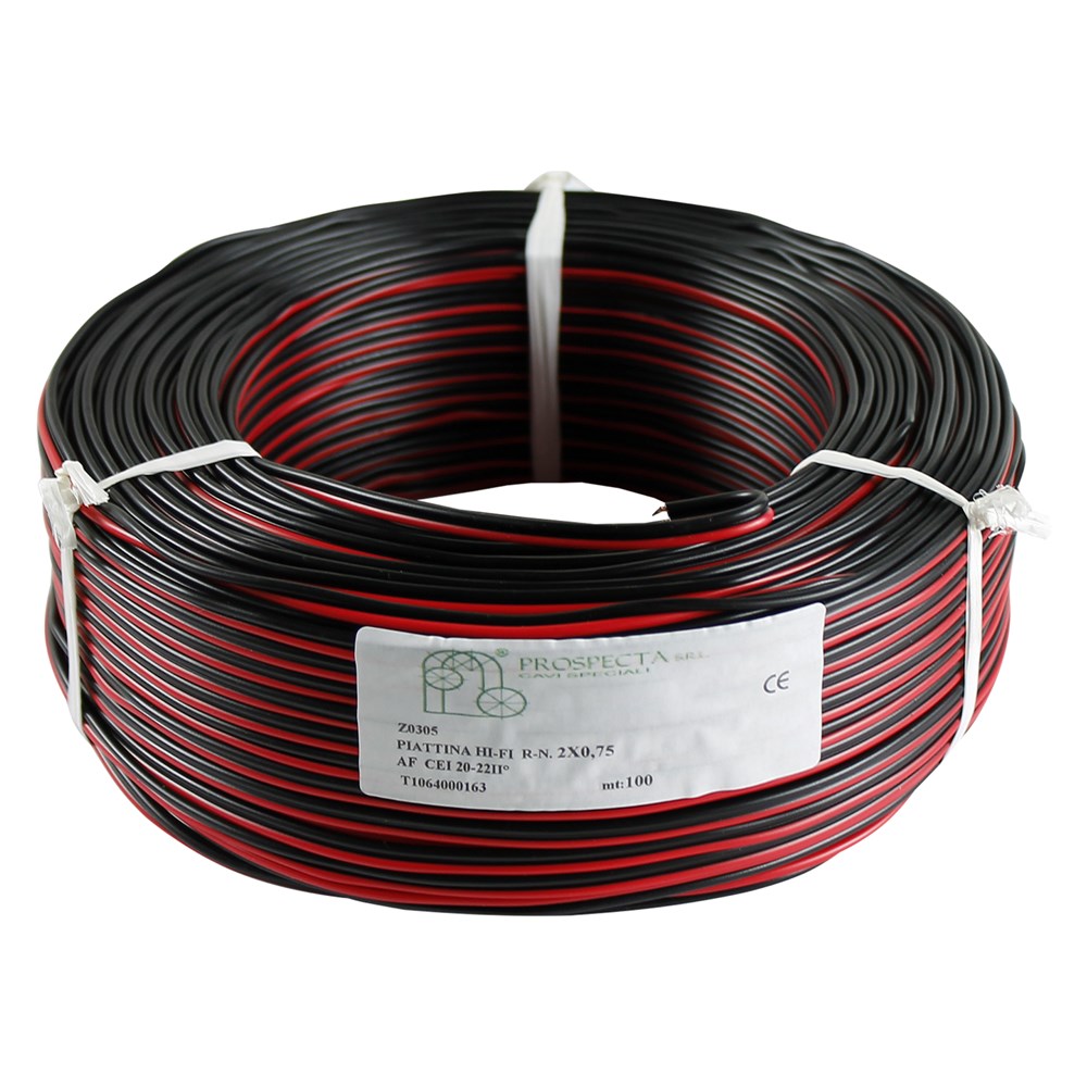 Kabëll fleksibel me përmasa 2x0.75 për tension të ulët për transmetim audio. Përbëja e përcjellësit është prej bakri. Është i disponueshëm në seksione dhe ngjyra te ndryshme. Ka dy shtresa izolimi prej materiali PVC, ngjyra e jashtme është e kuqe dhe e ze