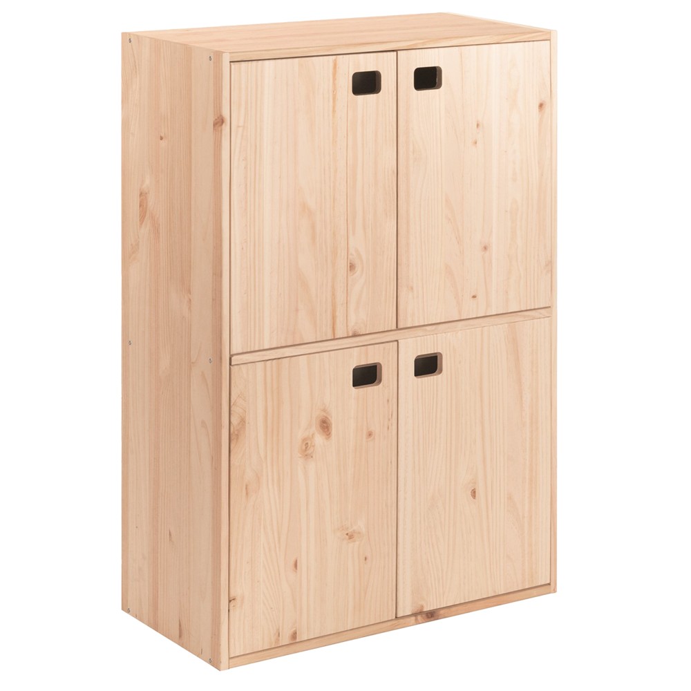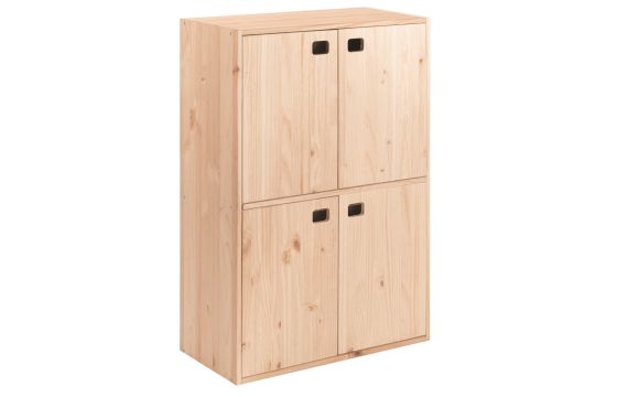Ky kabinet me katër dyer mund të jetë një zgjidhje e shkëlqyeshme ruajtjeje nëse e kombinoni me këto dollapë të madhësive të tjera, ose me një modul të vetë-mjaftueshëm më vete. Falë këtij kabineti magazinimi do të jeni në gjendje të organizoni të gjitha llojet e objekteve: nga librat tek këpucët e deri te lodrat apo shtroja. Mund të jetë një ide praktike për të ruajtur historitë dhe mbeturinat e të vegjëlve, të cilët do t'i kenë ato në dorën e tyre dhe në këtë mënyrë do të promovojnë autonominë e tyre. Mund të bëhet ajo mobilje e veçantë që ju mirëpret në një sallë. Ose si një zgjidhje shtesë ruajtjeje në një dhomë gjumi si bufe për ruajtjen e rrobave dhe aksesorëve ose në një kuzhinë për të grupuar të gjitha enët.