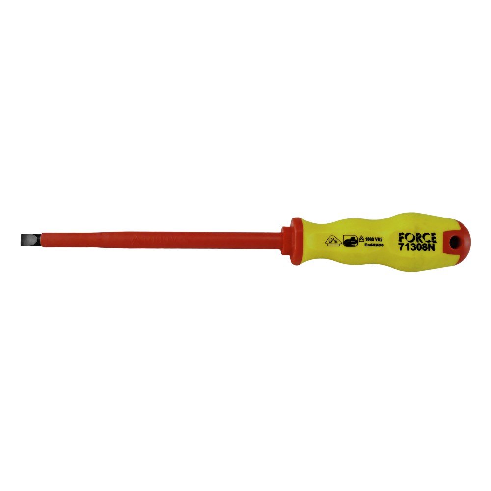 Kacavida e izoluar 8x175mm është e përshtatshme për te punuar deri ne nje rryme 1000V,nga profesioniste elektriciste. Me dorezë ergonomike, është e përbere nga nje materiali te bute izoluese për te qene e përshtatshme gjate punes. Te testuara deri ne rryme 10.000V sipas standartit te sigurise EN60900:2004