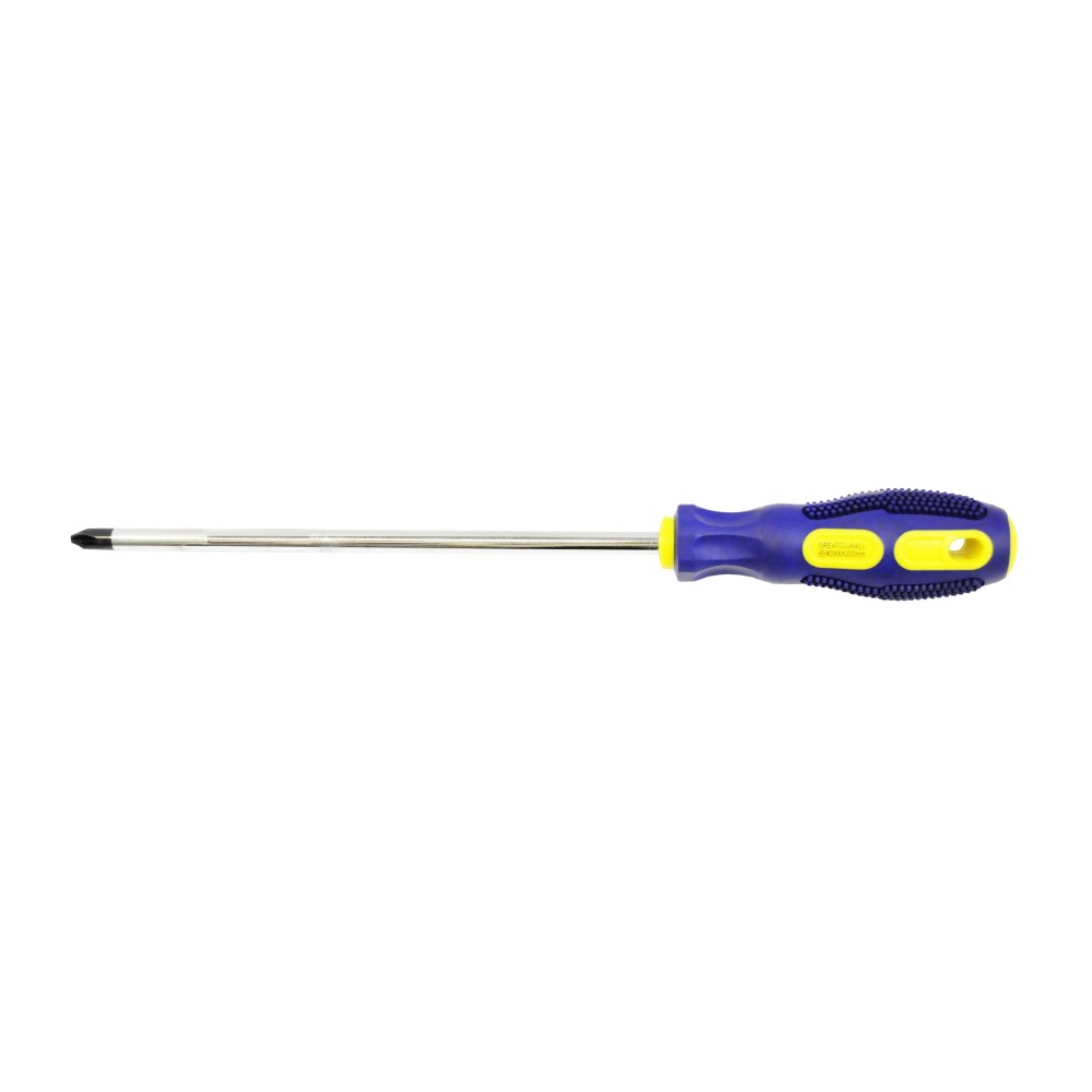 Kacavida (+), me përmasa 8x200mm, Rezistence të lartë kunder korrozionit. Me dorezë 2-ngjyreshe ergonomike është e përbere nga nje përzierje materiali i forte/bute për te qene te përshtatshme gjate punes.