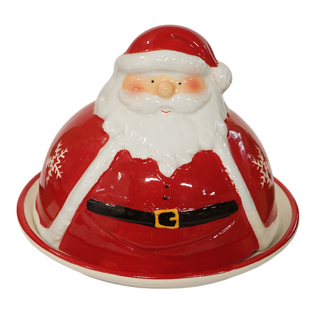 Kapak dekorues Christmas, qeramikë, e bardhë/e kuqe, Dia.16.5xH12.5 cm