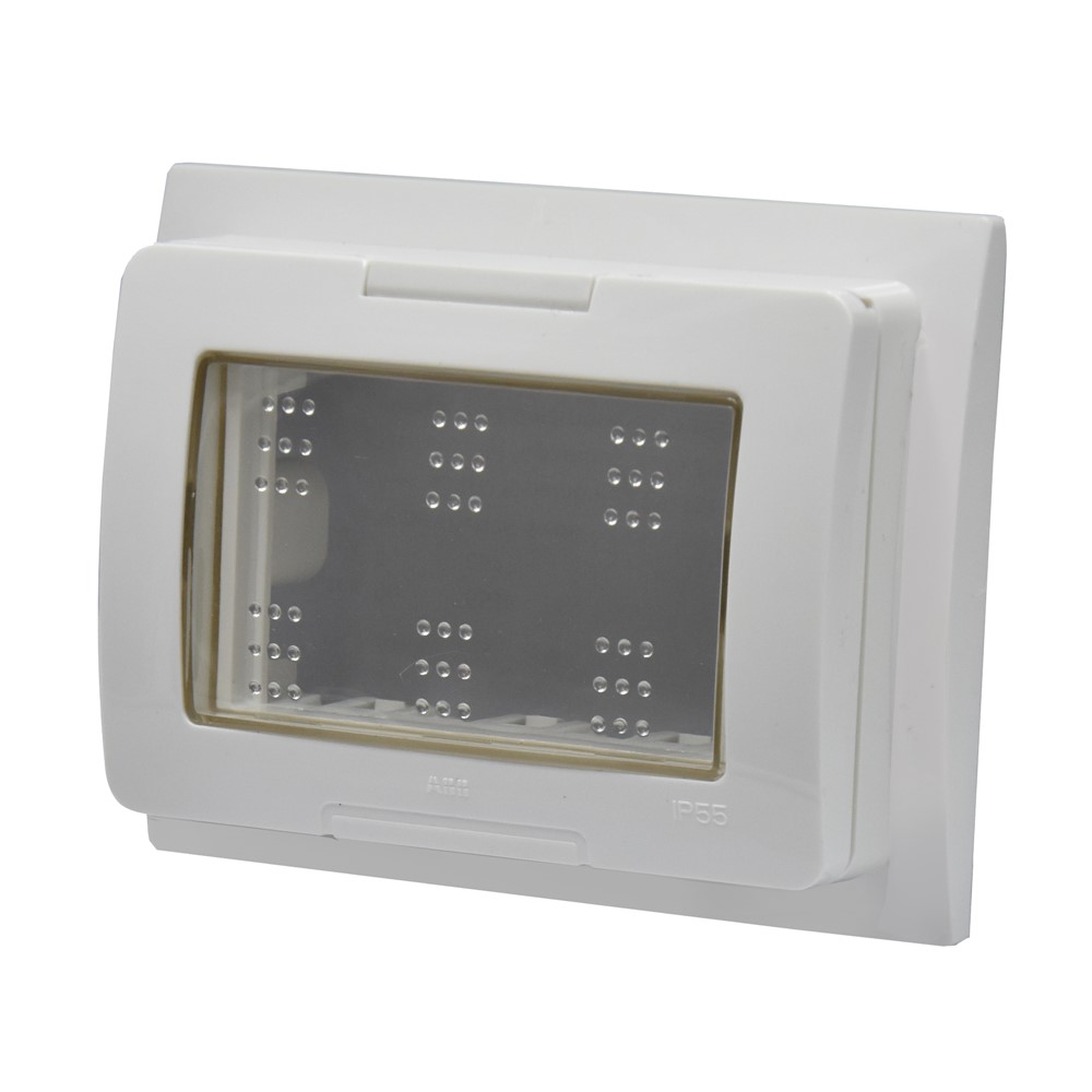 Po vlerësoni:Kapak montimi inkaso, 3 module, plastike, e bardhe, IP55.