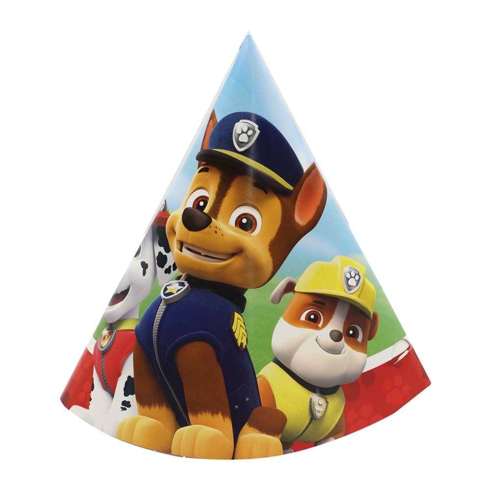 Kapele, Paw Patrol është një set kapelesh të veçanta me temën e serisë së animuar "Paw Patrol". Kapelet janë bërë nga materiali i kartonit dhe janë të dekoruara me motive dhe personazhet e serisë "Paw Patrol". Kapelet janë në madhësinë "one size", e cila përshtatet për shumicën e përdoruesve. Seti përfshin 6 kapele, duke i bërë ato të mjaftueshme për një grup të vogël të ftuarish. Ky produkt është i përshtatshëm për përdorim në festat e ditëlindjes, feste tematike, ngjarje festive, dhe çdo rast tjetër ku dëshirohet të ofrohen kapele të veçanta me temën e "Paw Patrol".