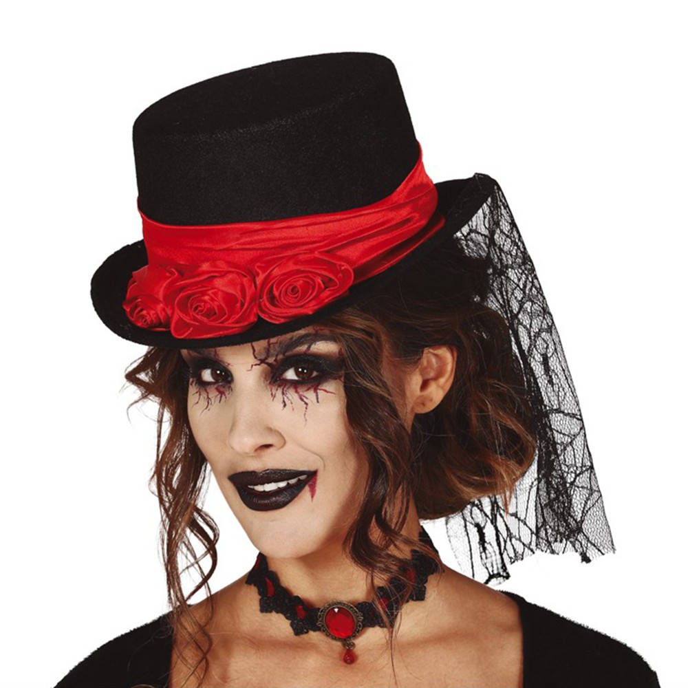 Kapele vampiri për Halloween është një aksesori i shkëlqyer për të krijuar një pamje të tmerrshme dhe misterioze të një vampiri në festën tuaj të Halloween-it. Kjo kapelë është e dizajnuar me kujdes, prej material tyl dhe poliestër për një pamje autentike dhe vjen në ngjyrat e traditës vampirore, të zezë dhe të kuqe. Kapeja ka një ngjyrë të zezë bazë dhe është dekoruar me detaje të kuqe, duke i dhënë një pamje të mahnitshme.