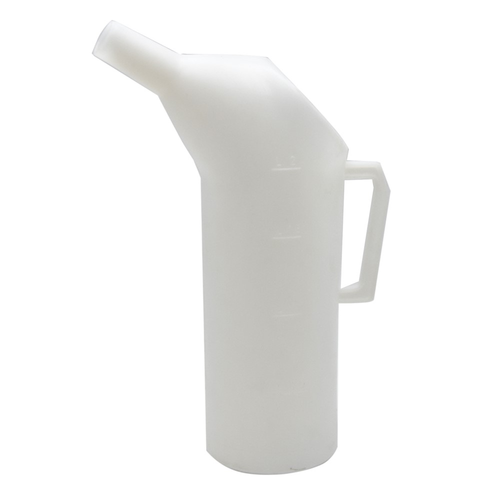 Karafë me shkallëzim prej materiali plastike jo toksike, 2 L për mbajtjen, transportin dhe mbajtjen e lëngjeve të ndryshme. Karafa është e pajisur me shkallëzim matës për matjen e lëngjeve dhe me dorezë.