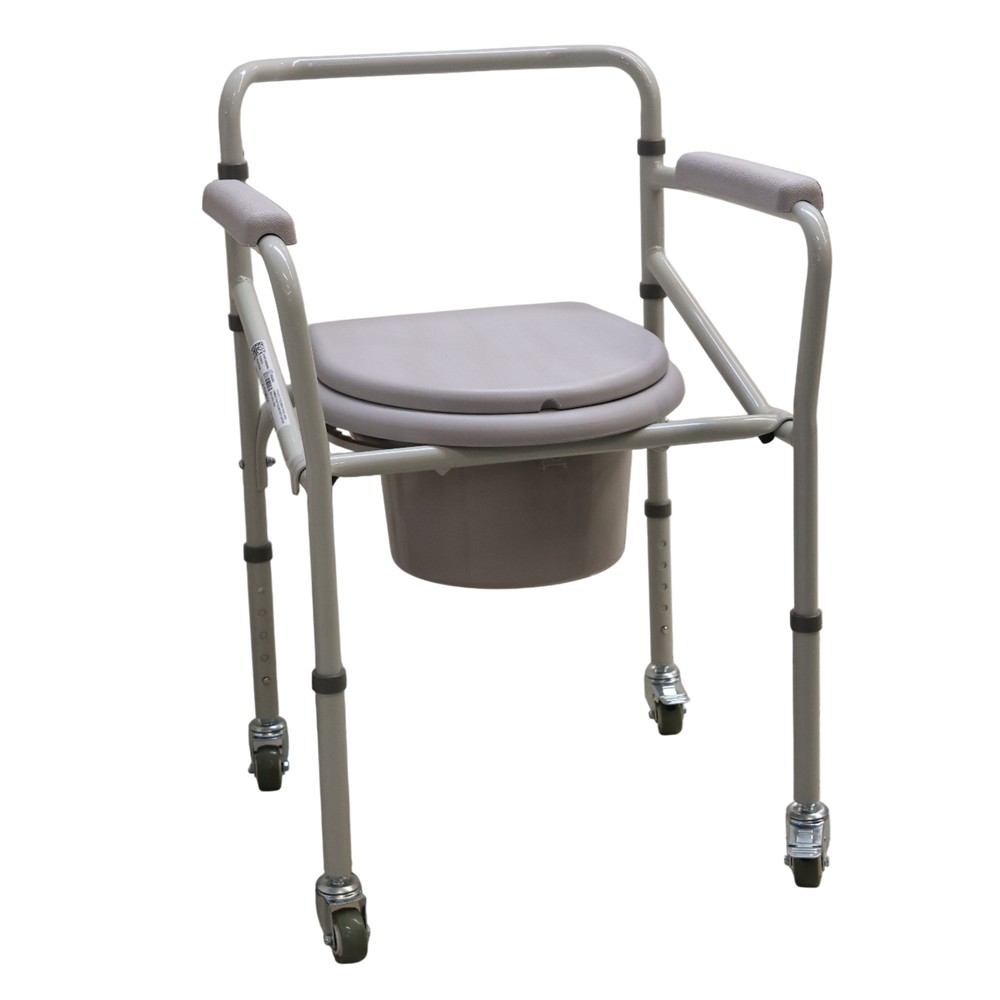 Mund të përdoret si një tualet i pavarur duke vendosur një tas plastik dhe pa tasin plastik mund të vendoset mbi çdo tualet; Lartësia e karriges rregullohet sipas lartësisë së tualetit; Ka mbështetëse krahësh për ulje dhe ngritje më të lehtë; Ka konstruksion çeliku dhe mund të përdoret për pacientët me peshë deri 100 kg.