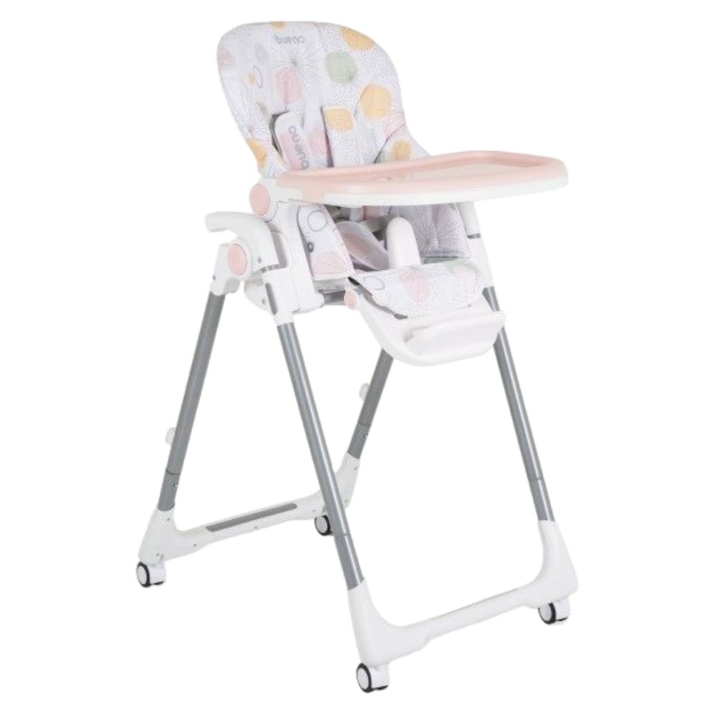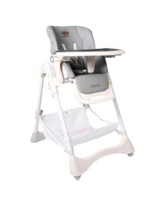 Karrige e lartë Bueno prej materiali plastik të qëndrueshëm, me veshje antibakteriale është jashtëzakonisht shumëfunksionale. Ka 6 nivele lartësie, 5 pozicione të mbështetëses, 3 kënde të mbështetëses së këmbëve, 3 pozicione të tabakasë së ushqimit me dy shtresa, sistem sigurie me 5 pika me rripa të rregullueshëm. Produkti mund të paloset lehtësisht dhe shpejt në një madhësi kompakte dhe të lëvizet me ndihmën e 4 rrotave dhe dy dorezave të projektuara posaçërisht për këtë qëllim. Me permase te produktit : 74.00cm x 55.00cm x 106.00cm, me peshe: 8.1kg. I përshtatshëm për fëmijë nga 6 + muaj dhe deri në 15 kg, afërsisht 3 vjeç