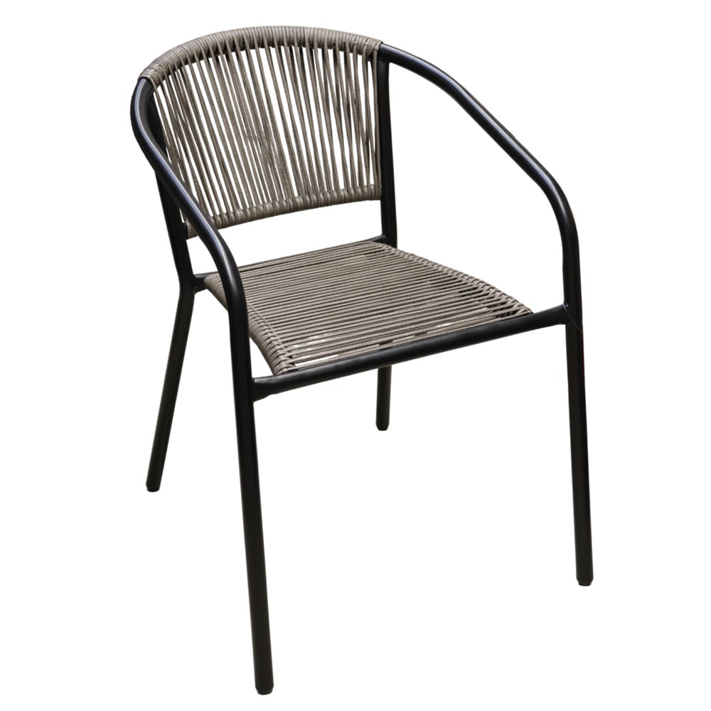 Kjo karrige për ambiente të jashtme ka një strukturë metalike të qëndrueshme në ngjyrë të zezë, ndërsa materialet tekstil dhe thurrja gri krijojnë një pamje moderne dhe elegante. Me përmasa 54x63xH74 cm, ajo ofron një ulëse komode dhe mbështetje të shkëlqyer, duke e bërë të përshtatshme për përdorim në kopsht, verandë, ballkon ose çdo hapësirë tjetër të jashtme. Kombinimi i metalit dhe tekstilit siguron qëndrueshmëri dhe rehati gjatë përdorimit të gjatë, ndërsa ngjyra e zezë dhe thurrja gri e bën këtë karrige të përshtatshme me shumicën e stilimeve të mobilimit të jashtëm. E krijuar për t'u përdorur në kushte të jashtme, kjo karrige është një zgjedhje praktike dhe elegante për ambientet jashtë shtëpisë.