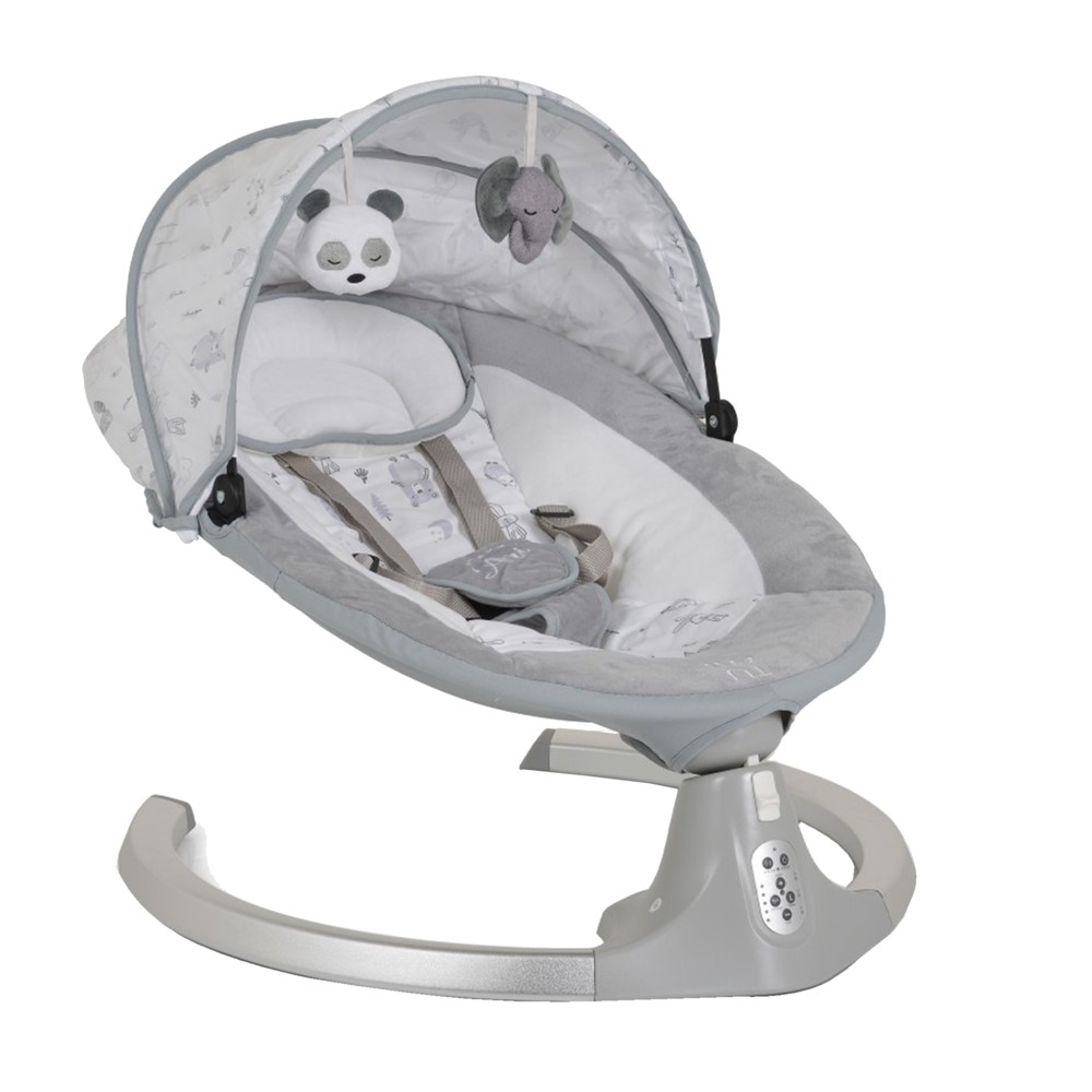 Karrige relaksi elektrike për bebe, prej materiali alumin i bazamentit dhe tekstil joalergjik për fëmijët. Karrigia përbëhet nga 5 nivele lëkundje, 12 melodi të qeta me volum të rregullueshëm. Karrigia ka gjithashtu një rrjetë mbrojtëse nga insektet, dhe lodra të varura në të. Ka rrip sigurues me 3 pika, dhe është e përshtatshme për fëmijë me peshë maksimale deri në 9 kg.
