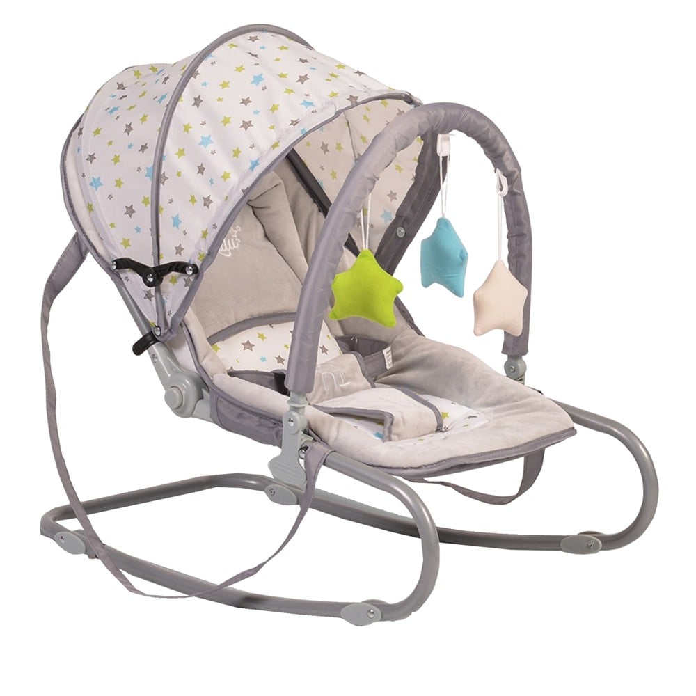 Karrige relaksi manuale për bebe, prej materiali alumin i bazamentit dhe tekstil joalergjik për fëmijët. Kjo karrige relaksi ka një lodër me varje e cila e mban fëmijën në lëvizje dhe i stimulon atij shqisat e të parit dhe të prekurit. Mbështetësja e pasme të jep mundësinë që të shtrihet në 2 nivele. Ka rrip sigurues me 3 pika, dhe është e përshtatshme për fëmijë me peshë maksimale deri në 9 kg.