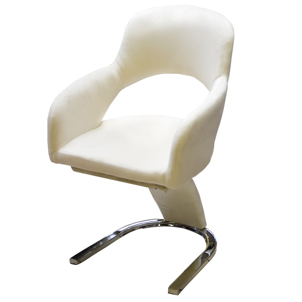 Karrige, strukturë metalike (argjendi), tapiceri tekstili velvet, kremi, 52x55xH89 cm