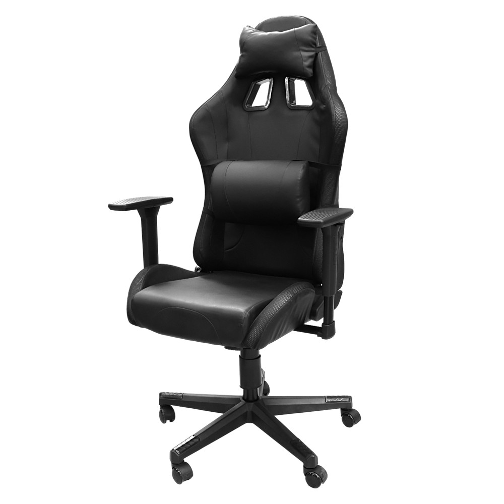 Po vlerësoni:Karrige studimi, krahë 2D, me drita LED, me mekanizëm funksional "tilt-lock", mbështetëse dhe ulëse PVC, bazament dhe rrota najloni, e zezë, 70x60xH126-136 cm