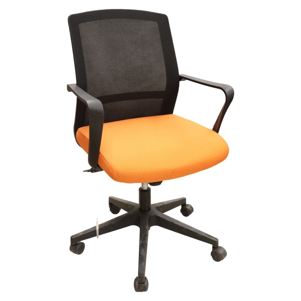 Po vlerësoni:Karrige zyre, mbështetëse rrjetëzuar, ulëse veshje tekstili, krahë PP, këmbë dhe rrota najloni, e zezë/portokalli, 46x44xH98 cm