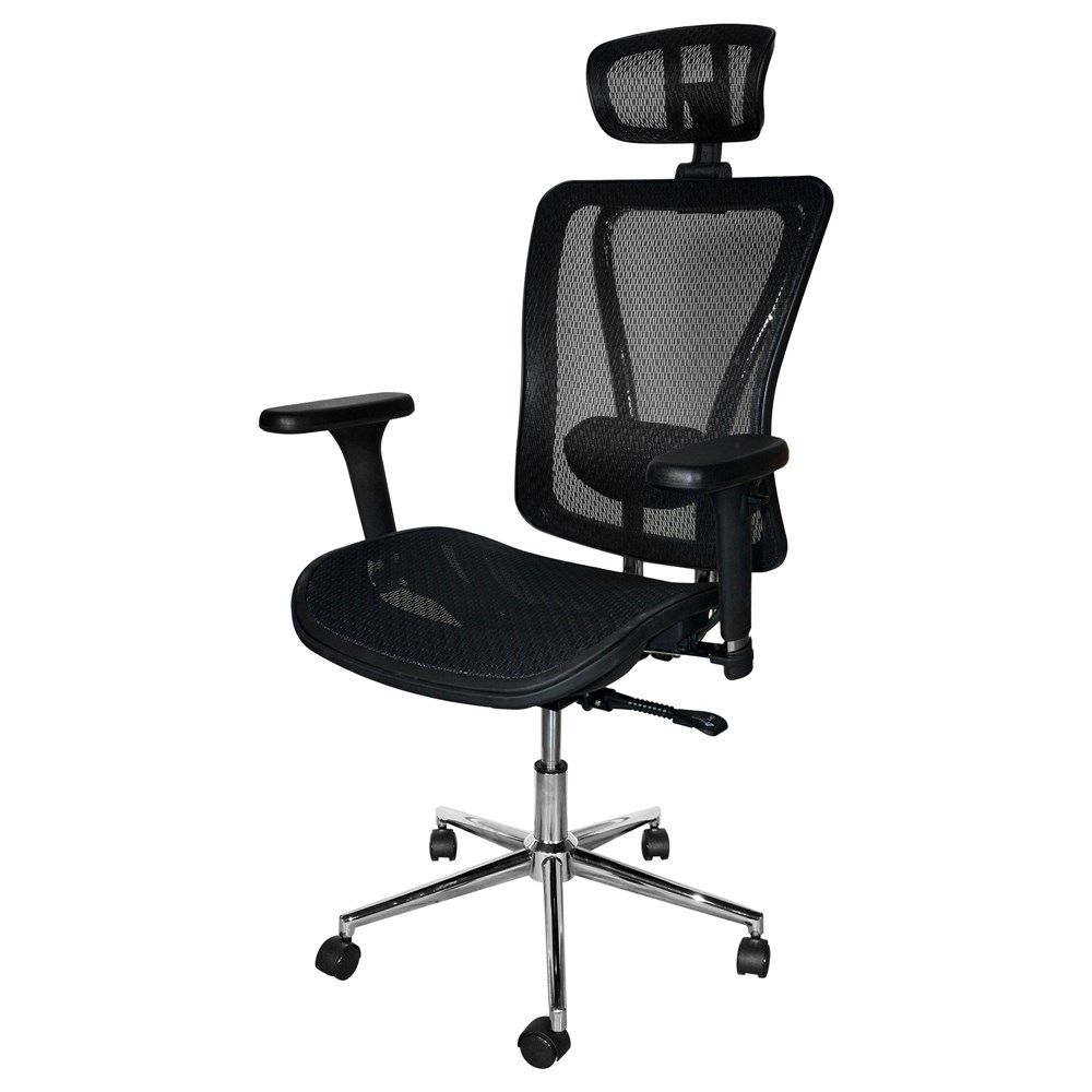 Po vlerësoni:Karrige zyre me rrota, me krahë, strukturë e kromuar, rrjetë dhe tapiceri tekstili, zezë, 66x66xH122-137 cm