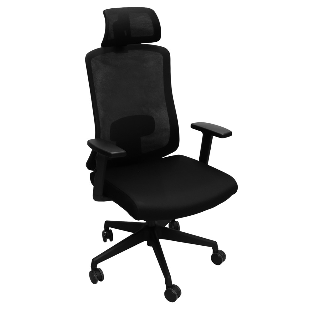 Po vlerësoni:Karrige zyre me rrota, me krahë, strukturë plastike, rrota najloni, mbështetëse rrjete, tapiceri tekstili, e zezë, 49x49xH115-125 cm