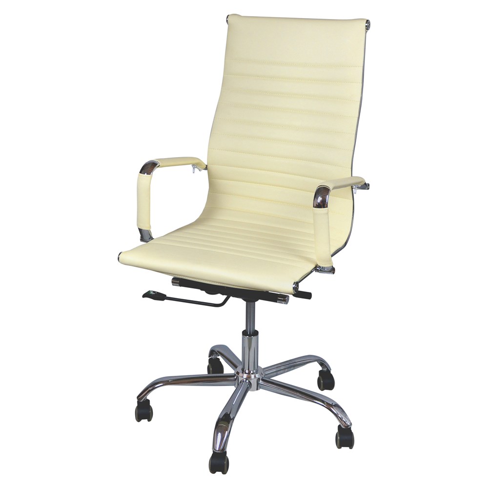 Karrige zyre me rrota, me krahë, veshje PU, krahë të kromuar me veshje PU, strukturë e kromuar me bazament 350mm, rrota material PU, 57.5x66xH108-116.5 cm