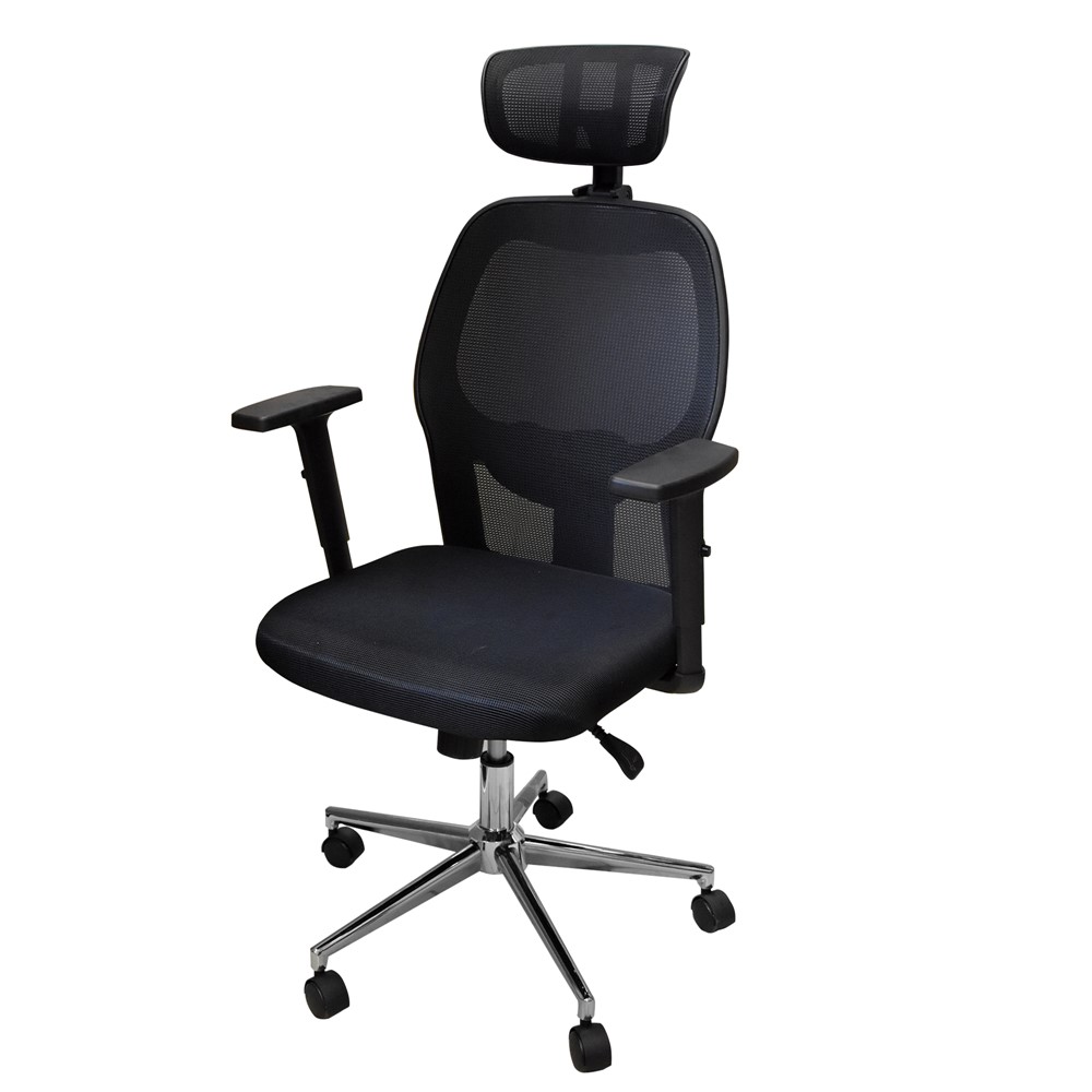 Po vlerësoni:Karrige zyre me rrota, strukturë e kromuar, rrota najloni, e rrjetëzuar, krahë PP, zezë, 63x66xH124-132 cm