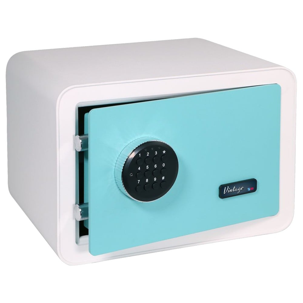 Kasaforta VINTAGE BTV per shtepi edhe zyra, e sigurt dhe elegante , me trashesi dere 6mm dhe trashesia ne trupin e kasafortes 3mm. Ngjyra e bardhe , permasat 250 x 350 x 280mm , menyra e hapjes me celes dhe elektronike , nje kod emergjence 8-shifror. pesha e kasafortes 16 kg dhe kapaciteti i brendeshem 17 Lt.