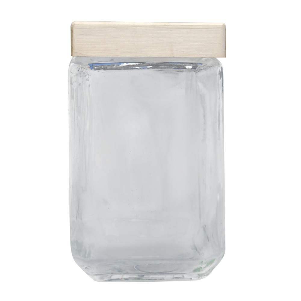 Dizajni transparent i qelqit lejon shikimin e përmbajtjes së brendshme të kavanozit, duke bërë të lehtë identifikimin e produkteve të ruajtura. Kapaku i drurit siguron një mbyllje të sigurt dhe të qëndrueshme për të mbajtur freskinë dhe cilësinë e ushqimit të ruajtur brenda.