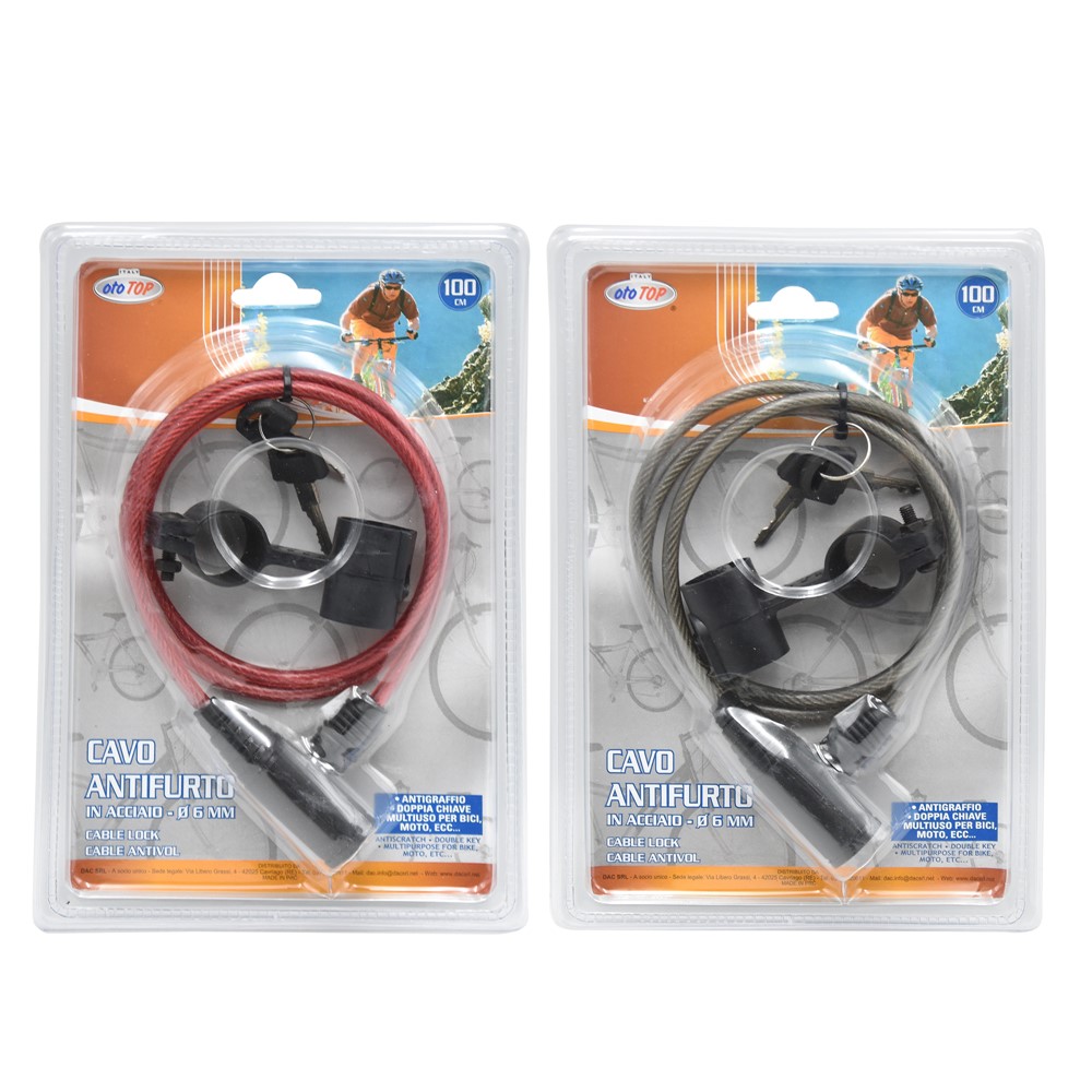 Po vlerësoni:Kavo lidhese per biciklete, Oto Top, celik, me veshje PVC me 2celesa, Permasa: 100 cm