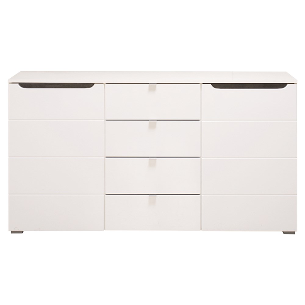 Komoja me 4-sirtarë dhe 2 kapake në finiturë të bardhë do të shtojë një pamje bashkëkohorë në dhomën tuaj të gjumit. Prakticiteti në magazinimin e rrobave e bën këtë komo magjepsëse. Kombinojeni me produkte të tjera për të krijuar një dhomë praktike dhe me stil.