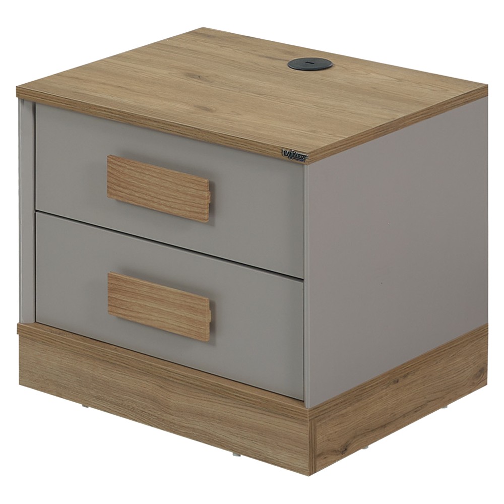 Komodinë, Huga, melaminë, gri/natyrale, 55x46xH47 cm