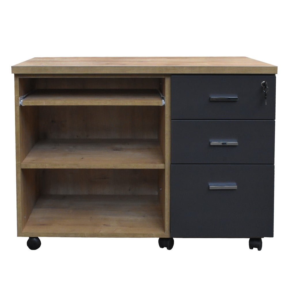 Komodinë tavoline zyre, Motto, melaminë, antrasit/lisi, 100x50x75 cm