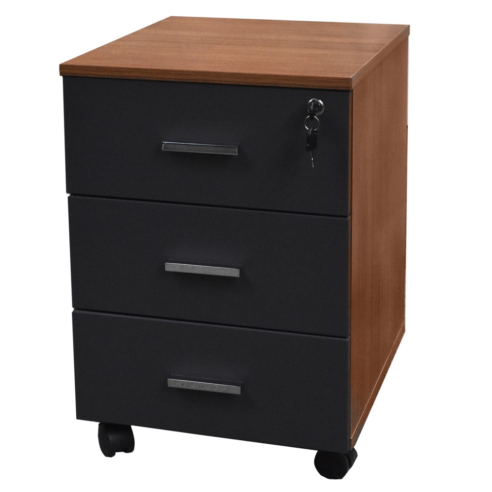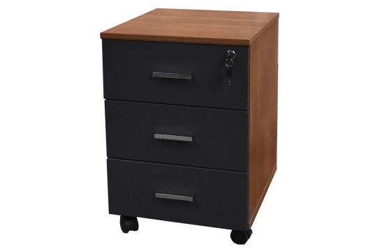 Komodinë tavolinë zyre, Standart, 3 sirtarë, 1 me çelës, melaminë, teak/antrasit, 40x47x60 cm