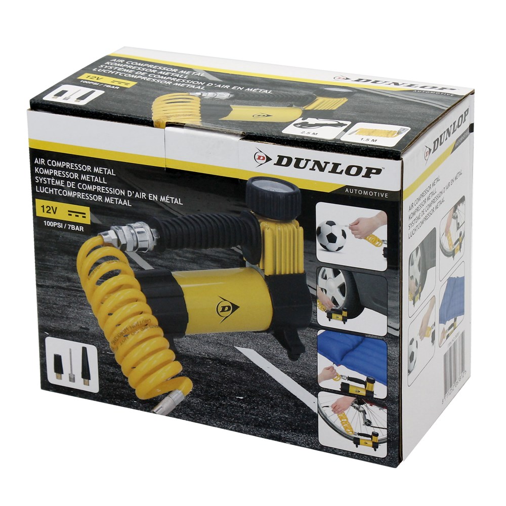 Kompresor ajri për makinë, Dunlop, 12 V, 100 psi, 96 W, metalik