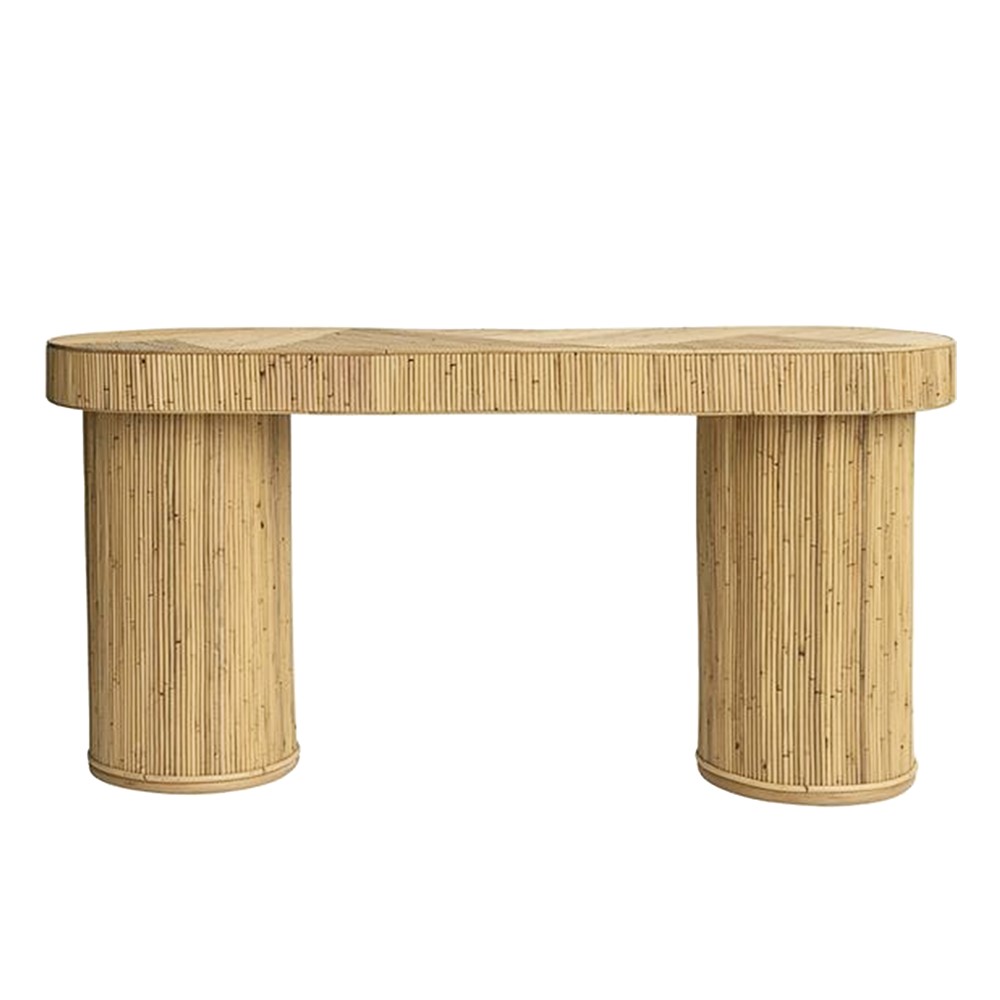 Konsola Kamboja është një shtesë elegante dhe praktike për dekorin tuaj. E bërë nga ratani i laminuar me nuancë kafe natyrale, kjo konsolë ofron një kombinim tërheqës të stilit natyral dhe qëndrueshmërisë.