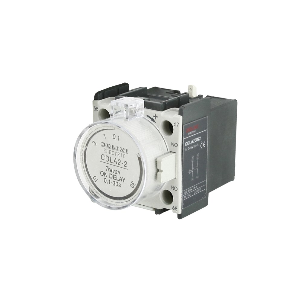 Kontakt ndihmes CDLA2 0.1-30s.Kontaktet ndihmëse shërbejnë për të kryer funksione dytësore si psh ndezja e sinjalizuesve të panelit kryesor,për të kuptuar nëse një kontaktor është I kycur ose jo së dyti kontaktet ndihmëse mund të përdoren për të lidhur,Rele kohe për të krijuar ndezje dhe fikje të koordinuara midis dy motorrëve. Po ashtu një kontakt ndihmës përdoret për të komanduar disa sinjalizues ose rele njëherësh ajo ka kontakte Normalisht të hapura dhe normalishte të mbyllyura.