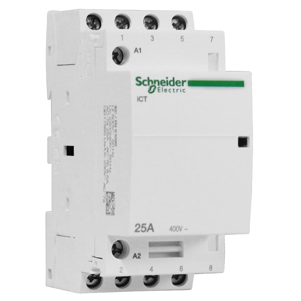 Kontaktorët janë celësa elektrikë të cilët përdoren për të kycur dhe shkycur pajisje të ndryshme nga rrjeti.Ky është një kontaktor I përdorshëm në tension alternativ(AC), bobina e tij është 230V.Eshte i dizenjuar per perdorim familjar por edhe me gjere.