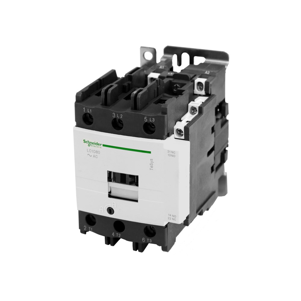 Kontaktorët janë celësa elektrikë të cilët përdoren për të kycur dhe shkycur pajisje të ndryshme nga rrjeti.Ky është një kontaktor I përdorshëm në tension alternativ(AC), bobina e tij është 220V (por mund të ndryshohet në varësi të specifikave të ndryshme të sistemit),ka tre pole me fuqi maksimale 50kW dhe me rrymë 80A.