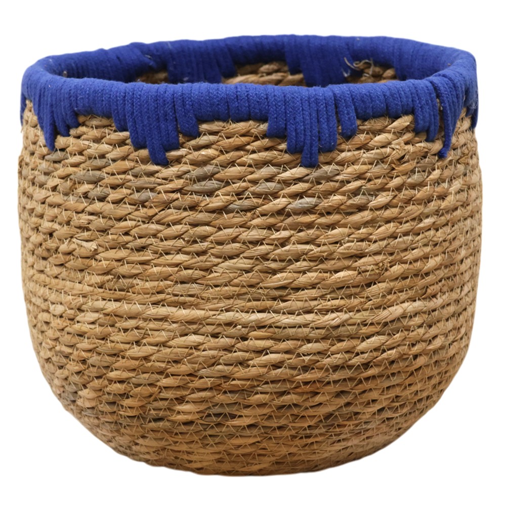 Po vlerësoni:Kosh dekorativ, Jorck, M, kashtë, blu/natyrale, Ø22xH19 cm