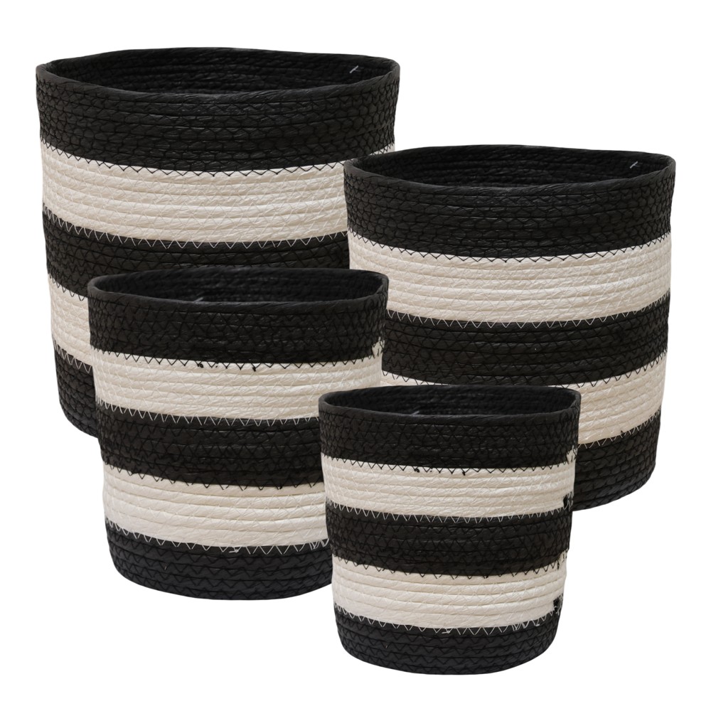 Kosh dekorativ, Rachel, set 4 copë, kashtë, e bardhë/e zezë, Ø19xH19 cm; Ø21xH21 cm; Ø23xH23 cm; Ø25xH25 cm