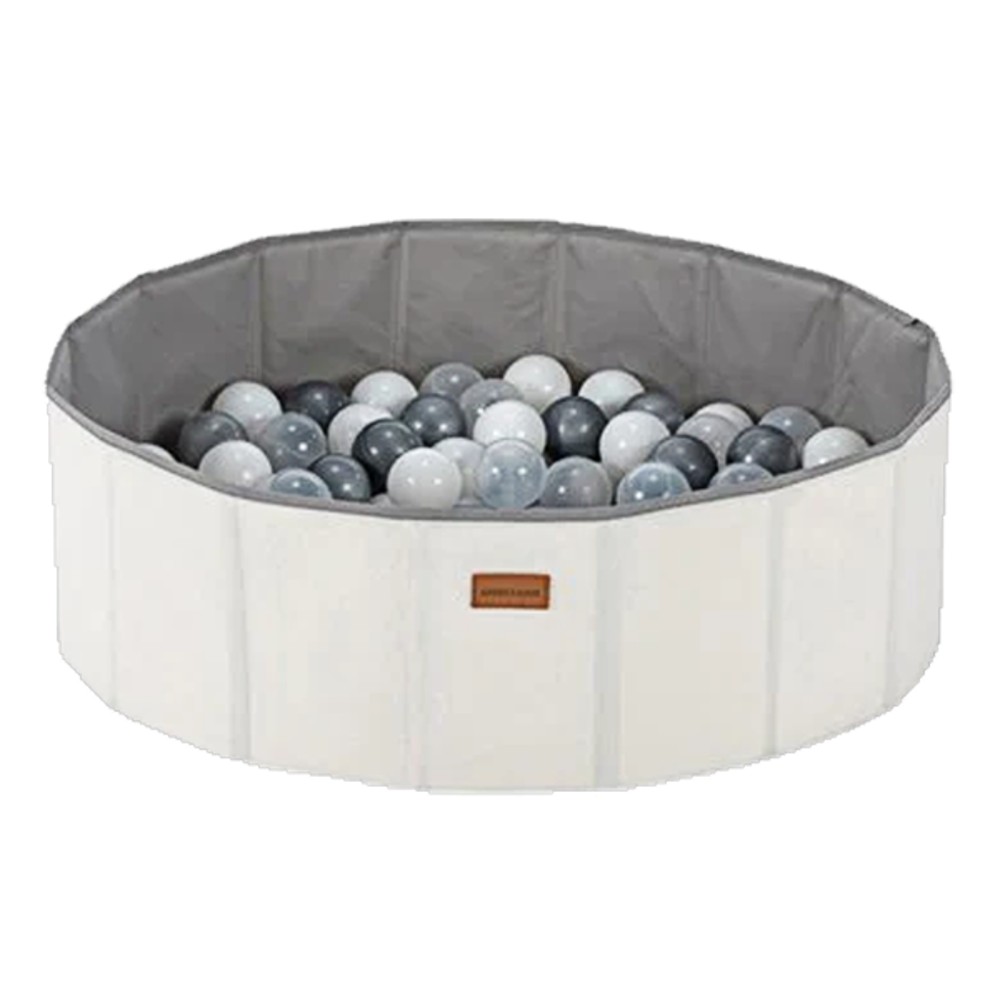 Kosh lojrash për fëmije e krijuar me material antialergjik poliester (600D Oxford), rezistent, e lehtë për pastrim dhe pa BPA. Ky kosh ka një përmasë 80x26 cm, dhe vjen në paketim me 90 topa në ngjyra të ndryshme: 30 topa të bardhë, 30 argjend dhe 30 transparent. Me anë të saj fëmijët stimulojnë shqisat dhe ndikon në zhvillimin kognitiv, gjuhësor, motorik dhe aftësitë sociale. Pas përdorimit koshi mund të pastrohet lehtësisht me një pecetë të lagur, dhe thahet shpejt falë pëlhurës rezistente ndaj ujit. Ky kosh nuk zë vend pasi hapet dhe paloset shumë lehtë dhe shpejt. Produkti është i pershtatshëm për fëmijë +6 muajsh.