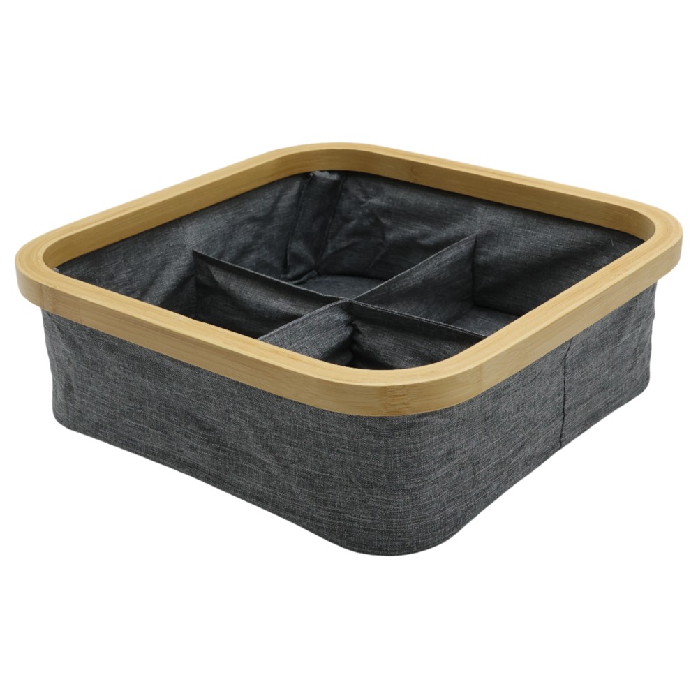 Kosh magazinimi elegant dhe funksional, i punuar me strukturë bambuje të qëndrueshme dhe mbulesë pëlhure në ngjyrë gri. Ideale për organizimin e sendeve të përditshme në shtëpi, ky kosh sjell një prekje moderne dhe natyrale në çdo dhomë, duke kombinuar qëndrueshmërinë me stilin minimalist.