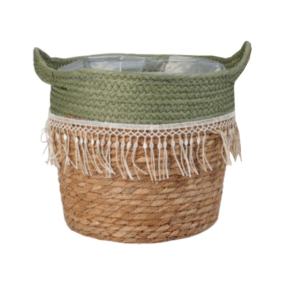 Po vlerësoni:Kosh magazinimi, rattan, tekstil, jeshile, kafe, H18 x ø21 cm